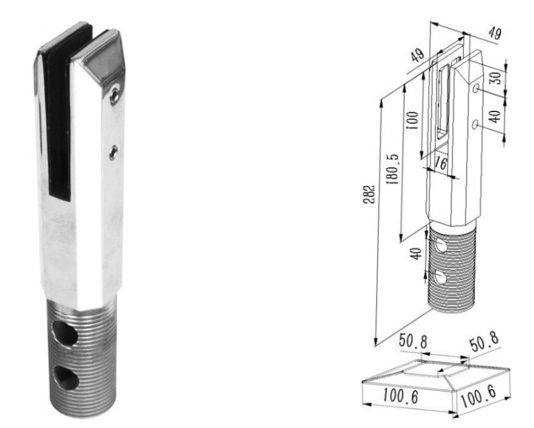 10mm 12mm 15mm 19 mm Glass Spigot 2205 Stainless Steel Square Core Drill Glass Railing Spigot Clamp