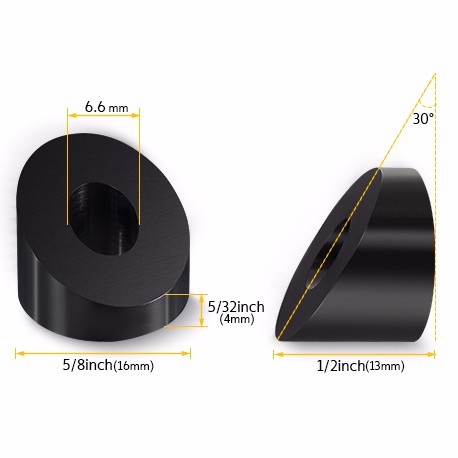 Feature: This angled washer is perfect for planning your own cable railing project, providing beveled washer for the angle of your garden, stairs and aisle beside for indoor or outdoor applications. (wood, steel, aluminum post on deck railing) These Angled stand off washers are used for termination on end posts that have angled or off set holes on stair railings. These washers can be used with threaded end terminals; short and long stud terminals; and even tuner terminals.