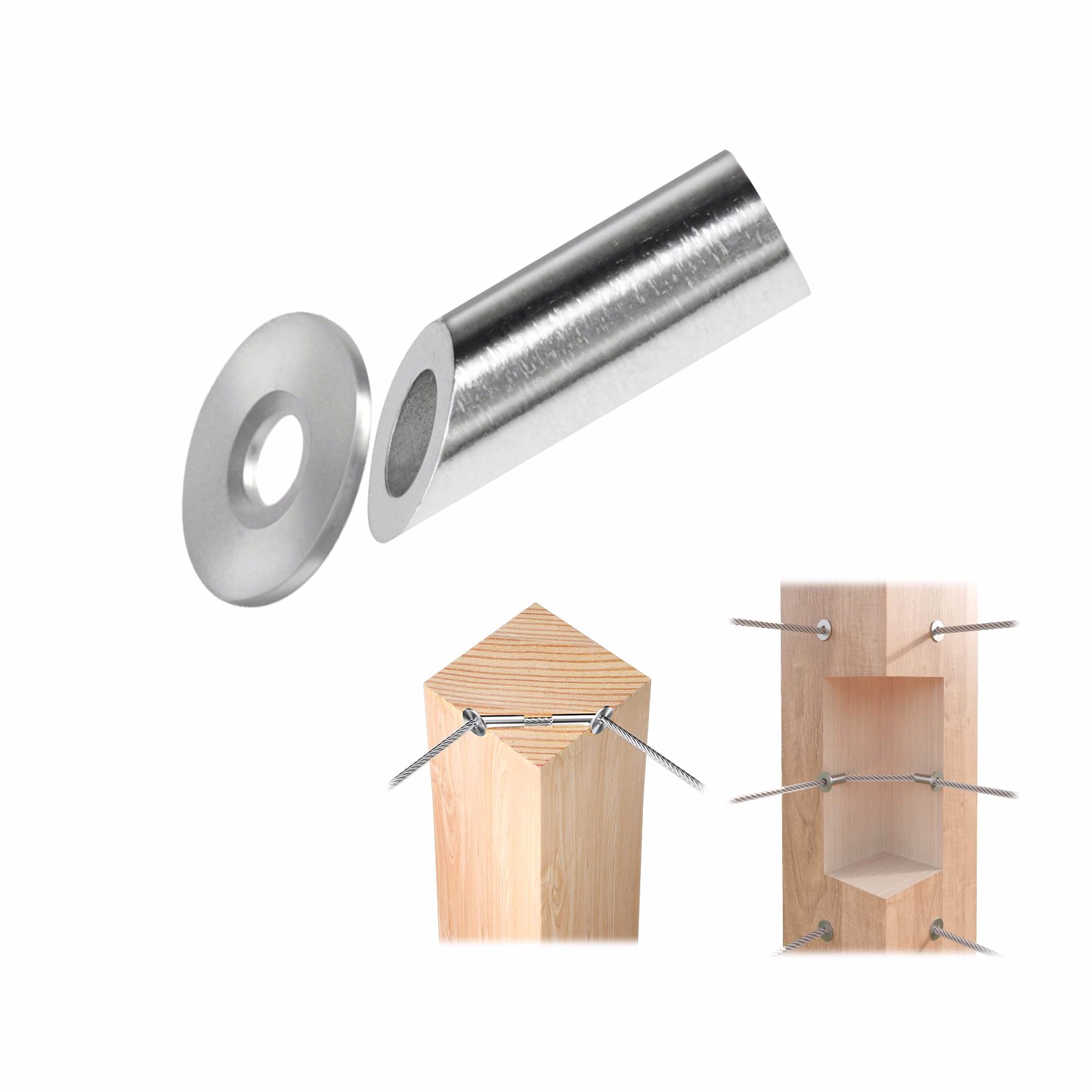 Protective Function - These stainless steel protective sleeves fit 1/8" wire rope in level wood posts. NOT for angle applications or metal posts. ONLY apply for both wood posts and wood posts with sleeves. They prevent the wire rope from being damaged by friction wear. Adding these protective sleeves will make it easier to stretch cable through posts and also help to maintain proper cable tension.