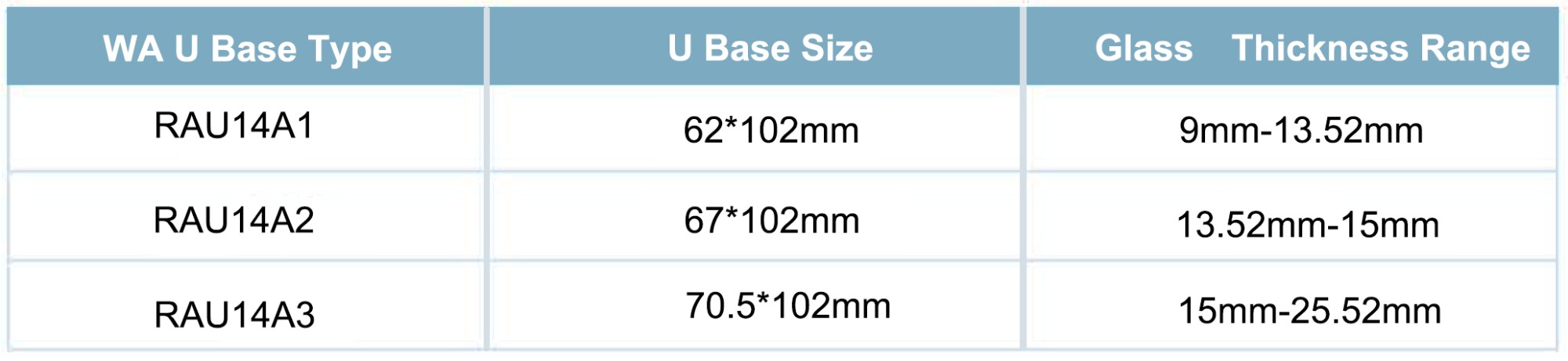 | Suit for: | 10/12/15/19mm tempered glass, or 5+1.14pvb+5mm or 6+1.52+6mm/8+1.52+8mm/10+1.52+10mm laminated glass. |