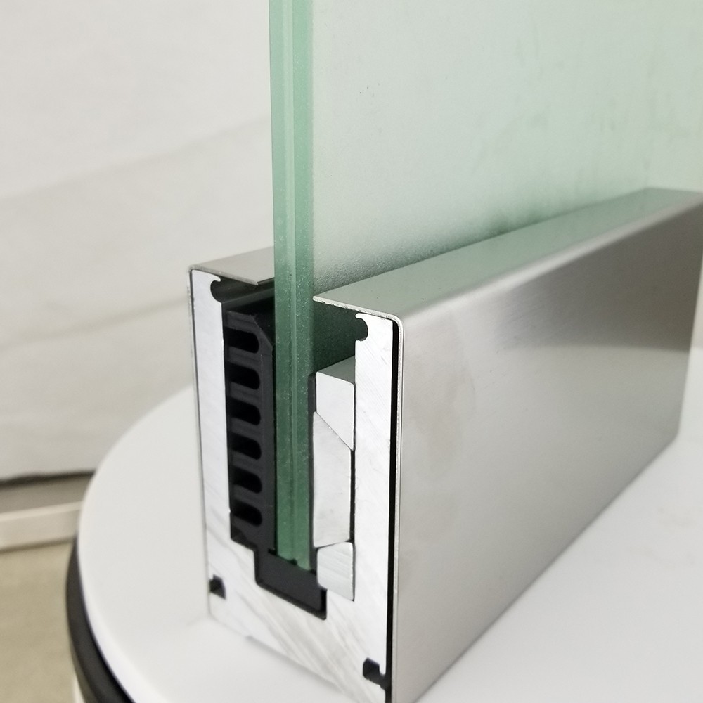 This products is made by aluminum alloy and use for glass panel fixing in to U slot channel base. Now very popular in glass railing or glass partition.