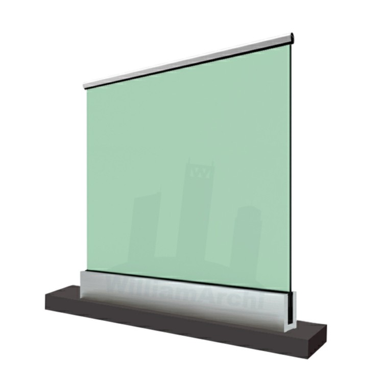 This system are normally use a U shape shoe base with slot for glass fit. so the whole piece of glass panel will like a frameless glass wall on floor or side mounted on terrace.