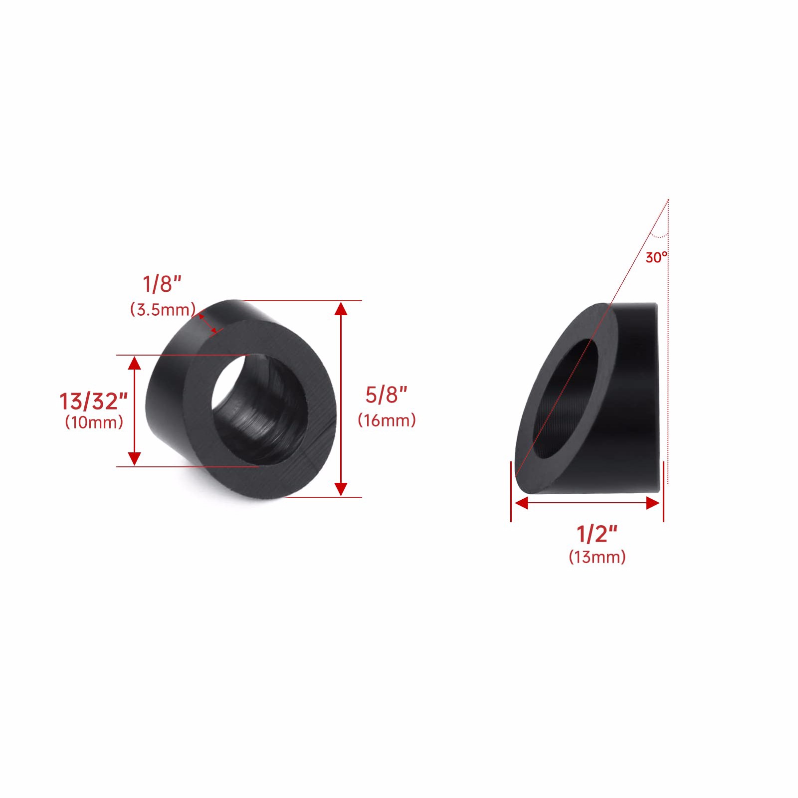 Material: Made of T316 marine-grade stainless steel. High tensile strength and anti-fatigue strength Weatherproof, super strong resistance to rust and corrosion.For 25-35 degree stairs - This T316 stainless steel angled washer is specially designed to act as a filler between the cable railing kit and the end post on 25 30 35 degrees staircase. The inner diameter is 3/8", suitable for 1/8" 5/32” 3/16" cable railing kit with outside diameter less than 3/8" in 25 30 35 degrees staircase cable railing system.