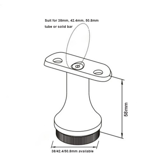 Flat, 38.1, 42.4, 48.3, 50.8mm tube or solid bar handrail