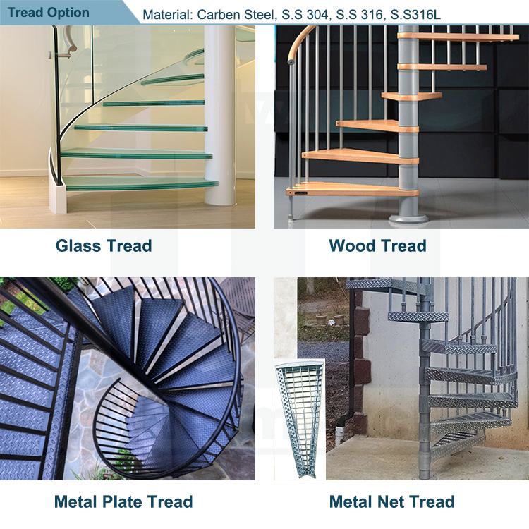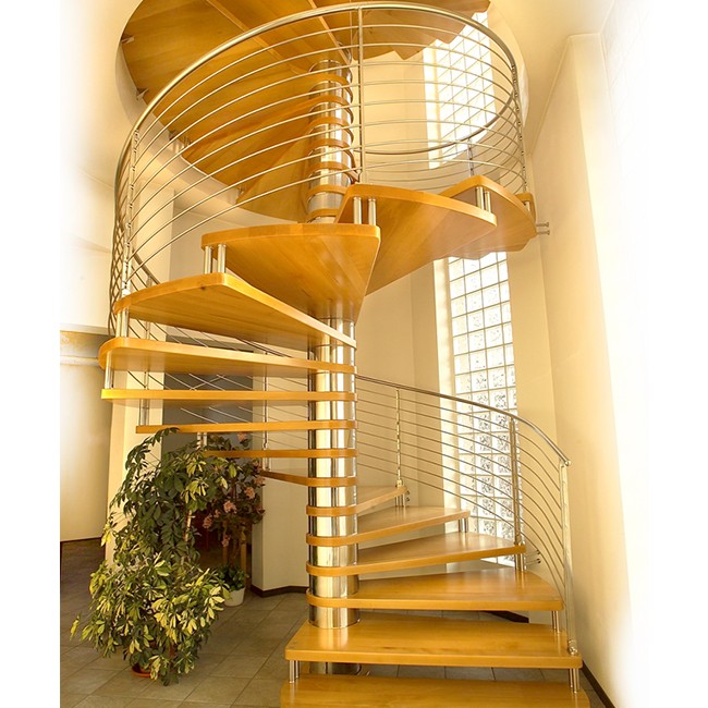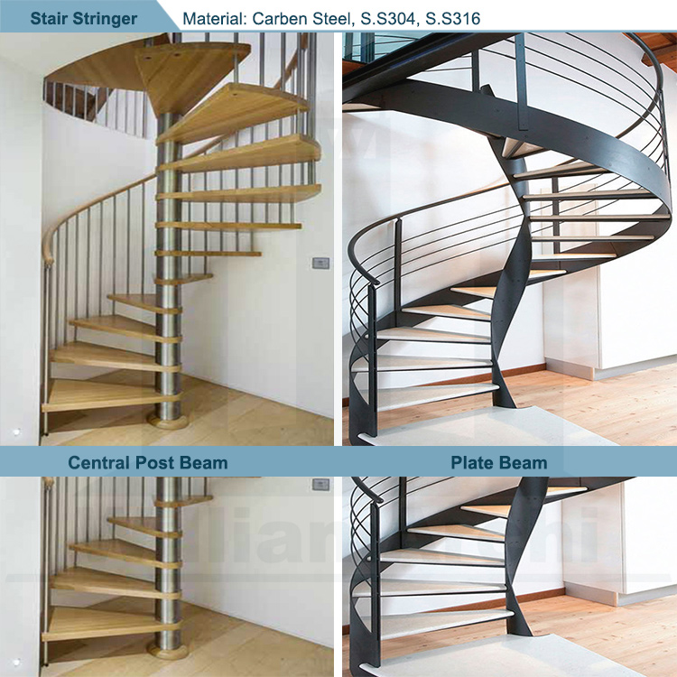 WilliamArchi create an amazing elegant, modern,high quality wooden treads circular staircase.You can customize outdoor helix spiral staircase according to your requirement for your building project with my professional stair manufacturer. Please see details information of option parts of spiral staircase for your reference. This spiral staircase consist with side stainless steel plate stringer and central post.Normally will have metal central post as stringer. Some design will also have a spiral fence or a curved beam at outside to support the staircase.