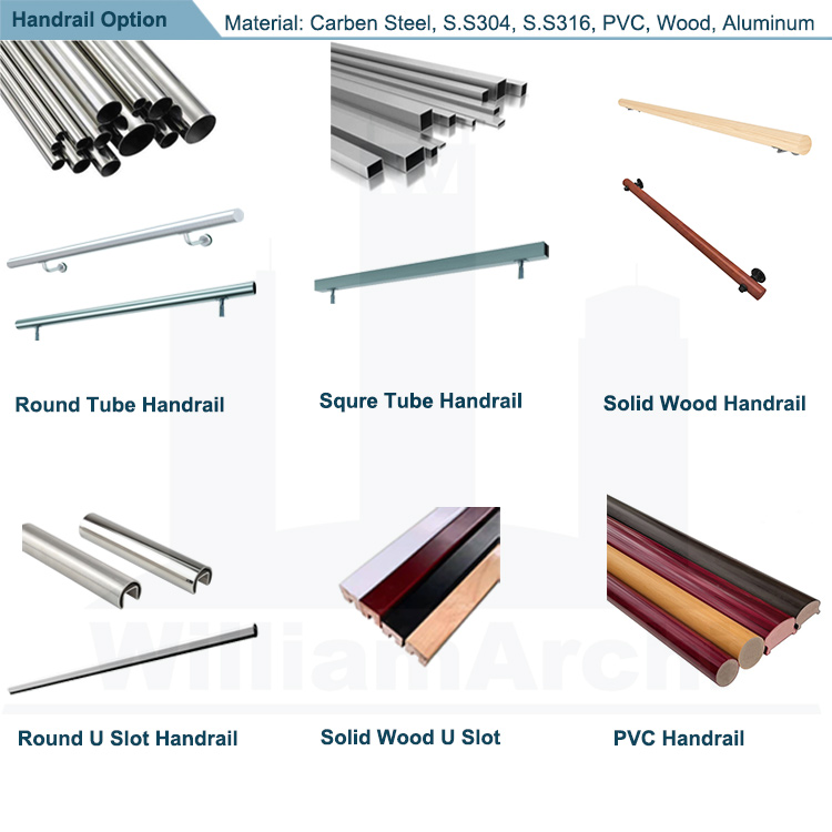 Handrail:stainless steel, wood, PVC