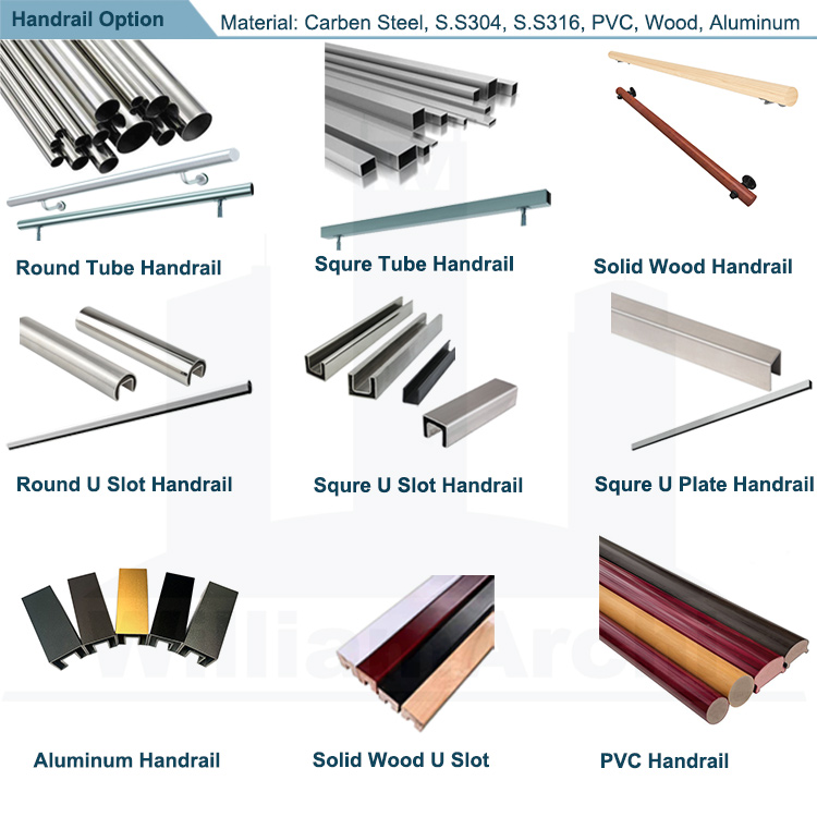 Handrail:stainless steel, wood, PVC