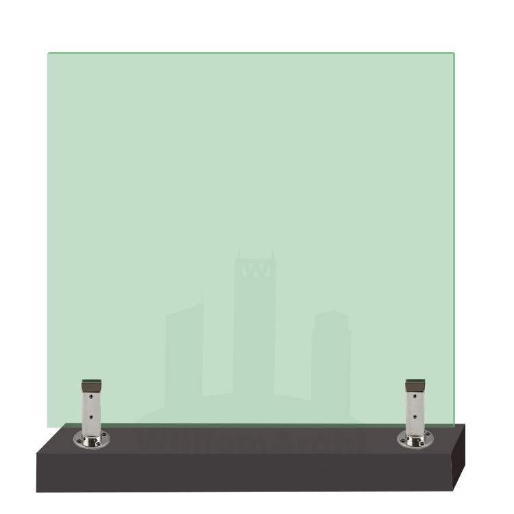 Glass clamp are used between to pieces of glass. This design is to reinforce railing glass panel. Also can make the railing glass alignment.