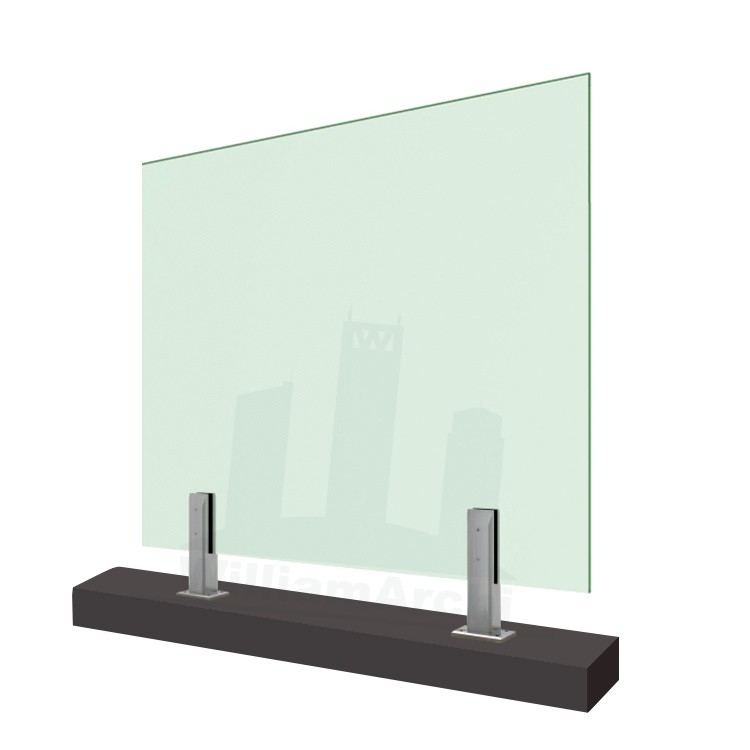 Glass clamp are used between to pieces of glass. This design is to reinforce railing glass panel. Also can make the railing glass alignment.