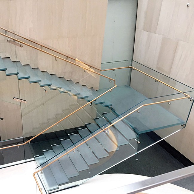 Features of glass steps straight run stairs .