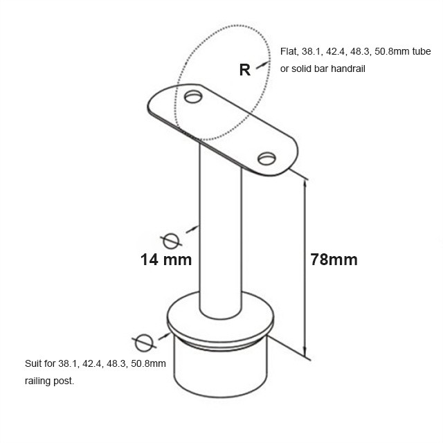 Flat, 38, 42.4, 48, 50.8mm tube or solid bar handrail; |