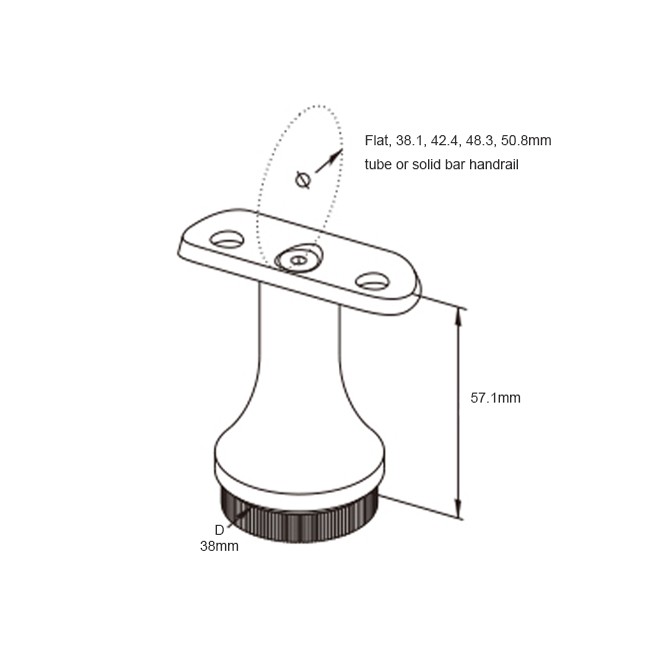 Flat, 38.1, 42.4, 48.3, 50.8mm tube or solid bar handrail