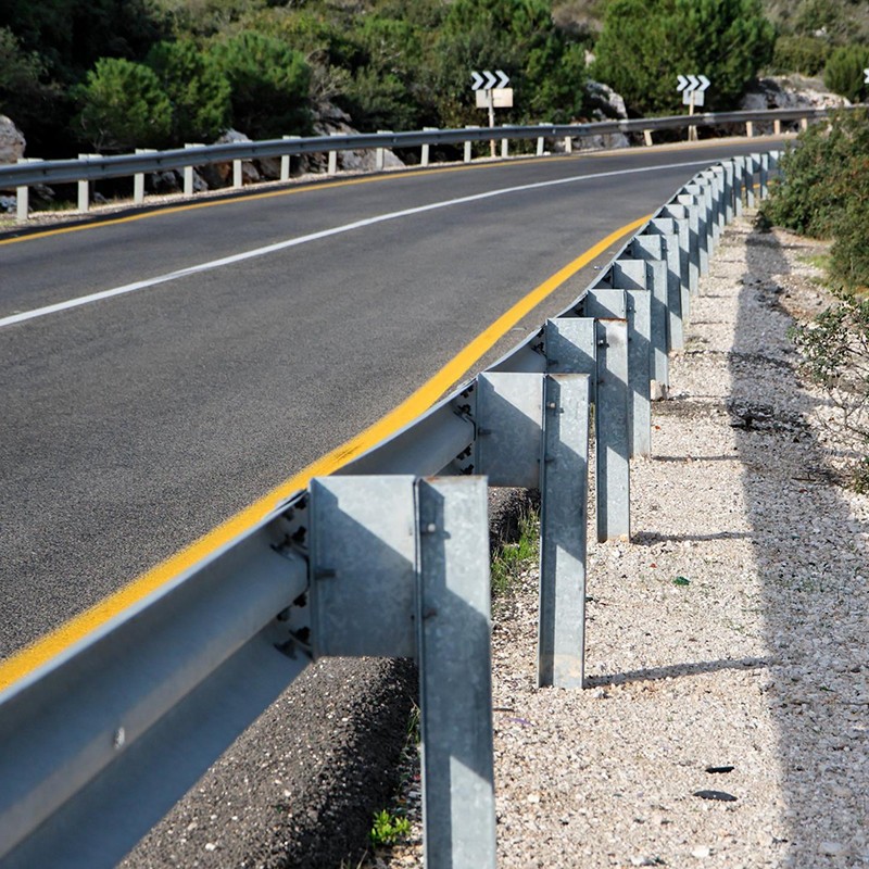 Guardrail is a kind of road crash barrier used for securing highway safety by preventing errant vehicles from sliding out of the roads and impacting the roadside buildings or other objects. So it is most commonly fixed on the side of the highways, dock areas, aisles, especially on curves and slopes for protection against run-off-road collisions. There are mainly two specifications of steel guardrail: W-Beam guardrail and Thrie-Beam guardrail, They are manufactured from Q235B or Q345B grade steel in 2.5-4mm base metal thickness as supplied by China Steel Limited.All products are hot dipped galvanized or powder coated after fabrication to meet the requirements of Chinese National Standards ,AASHTO M180 Standard, SANA 1350 Standard and etc.