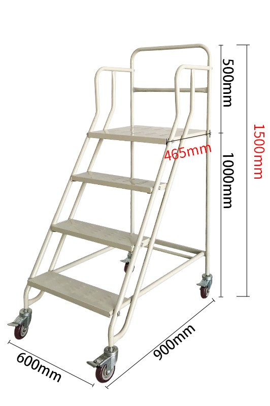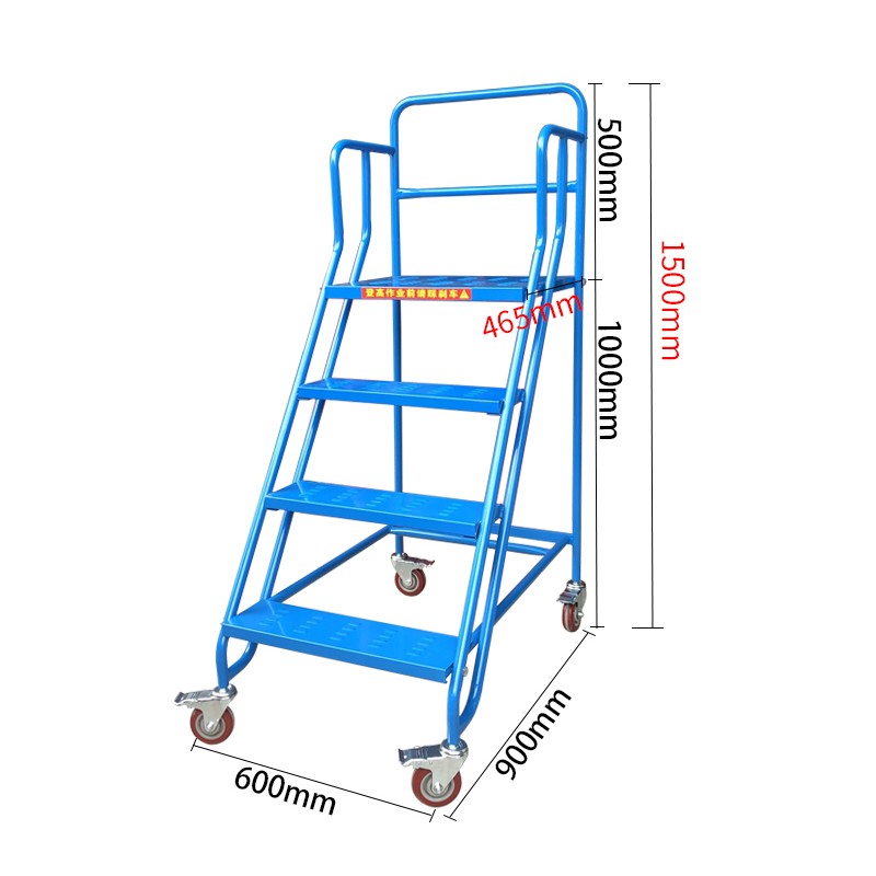 It is equipped with two steering casters and two fixed casters, which can be moved flexibly. It is a warehouse and storage equipment,It is suitable for heavy load and daily operation; it can be disassembled,It is simple and convenient for transportation. Customers from other places deliver goods in the form of unassembled products, and can assemble them by themselves,The product meets the standard of EN131. Equipped with pedal locking mechanism, the bottom pedal can be pressed automatically Moving the fixed ladder and pressing the unlocking pressure bar of the bottom pedal can easily move the pick-up ladder.