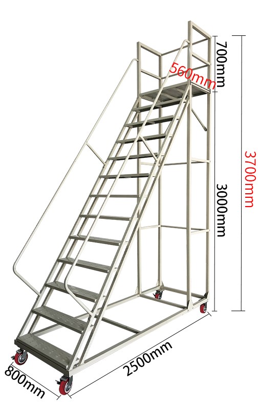 It is equipped with two steering casters and two fixed casters, which can be moved flexibly. It is a warehouse and storage equipment,It is suitable for heavy load and daily operation; it can be disassembled,It is simple and convenient for transportation. Customers from other places deliver goods in the form of unassembled products, and can assemble them by themselves,The product meets the standard of EN131. Equipped with pedal locking mechanism, the bottom pedal can be pressed automatically Moving the fixed ladder and pressing the unlocking pressure bar of the bottom pedal can easily move the pick-up ladder.