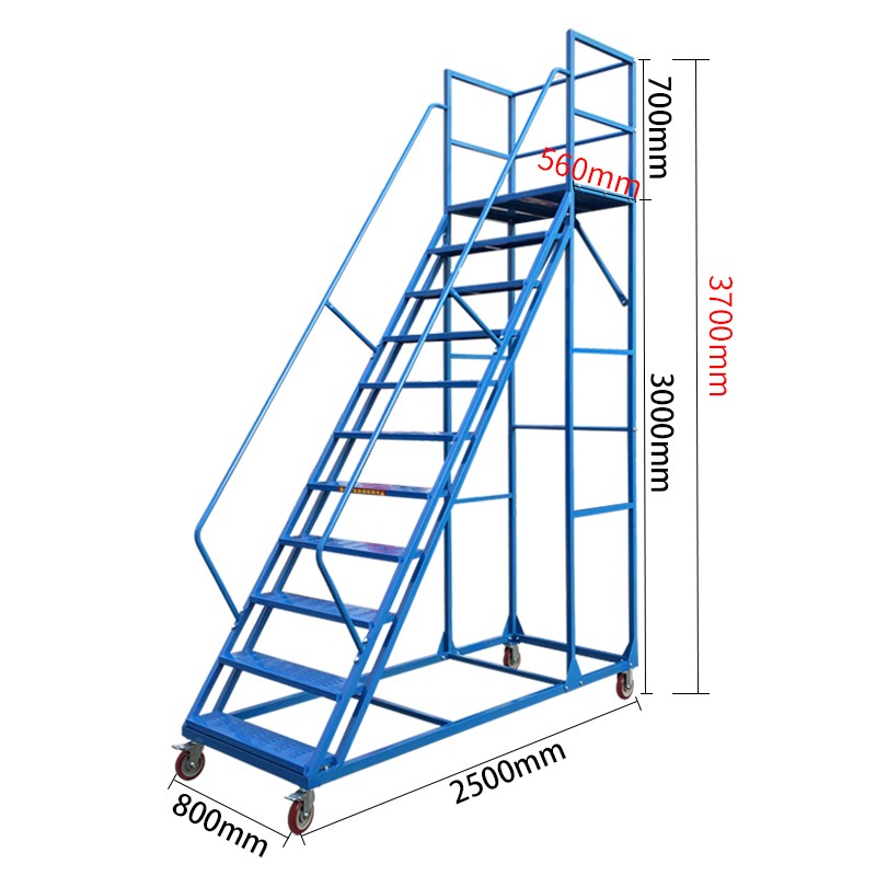 This platform is made with wheels acting as staircase ladder. You can use it at warehouse or supermarket or storage when you climbing to platform for getting products from shelf.
