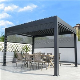 WilliamArchi's outdoor aluminum pergola is a combination between pergola and horizontal louver which is completely made of aluminum and allows light and breeze when open. Using an electric telescopic engine connection system through parts and aluminum extrusions specially designed, the slats are dosed completely sealed preventing the passage of light and water. When closed the slats become channels that carry the water to the sides that have their own system of canals and water should turn towards the poles where it drains. Guaranteed to withstand severe climatic changes and winds of up to 100 KM/h . (The resistance is not guaranteed under the weight of snow).
