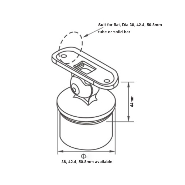 Flat, 38, 42.4, 50.8mm tube or solid bar handrail