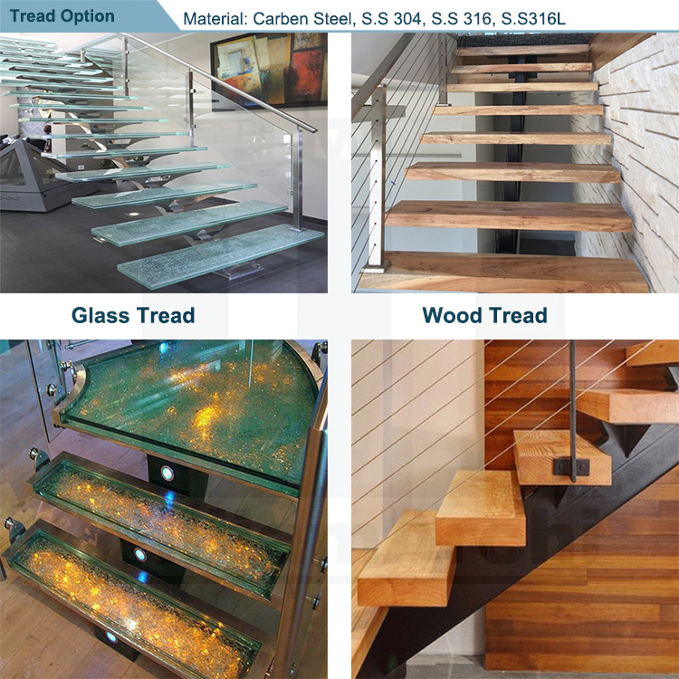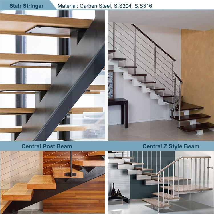 A wide range of choices: there are a variety of materials available for custom mono stringer straight stairs. Commonly used materials are metal, wood, glass, stone and composite materials.