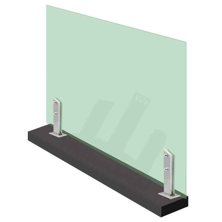 Glass clamp are used between to pieces of glass. This design is to reinforce railing glass panel. Also can make the railing glass alignment.