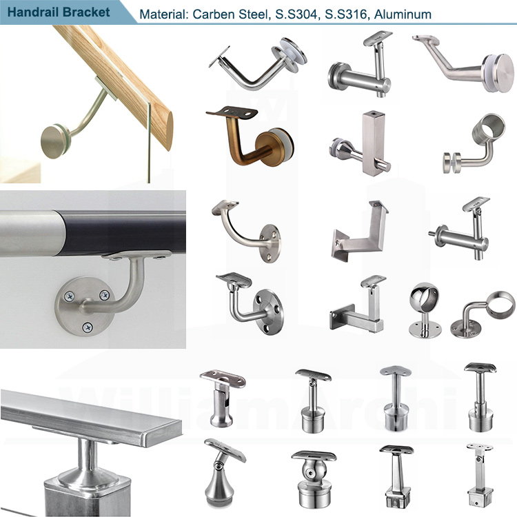 Railing brackets can be used for holding the handrail from spigot glass railing fence. Also on wall at stairway place.