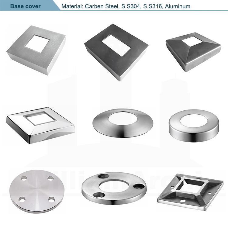 Base made by a piece of metal or parts, the base will be welding to baluster post or installed to post. Base cover as a decorative part to cover the screws of the base.