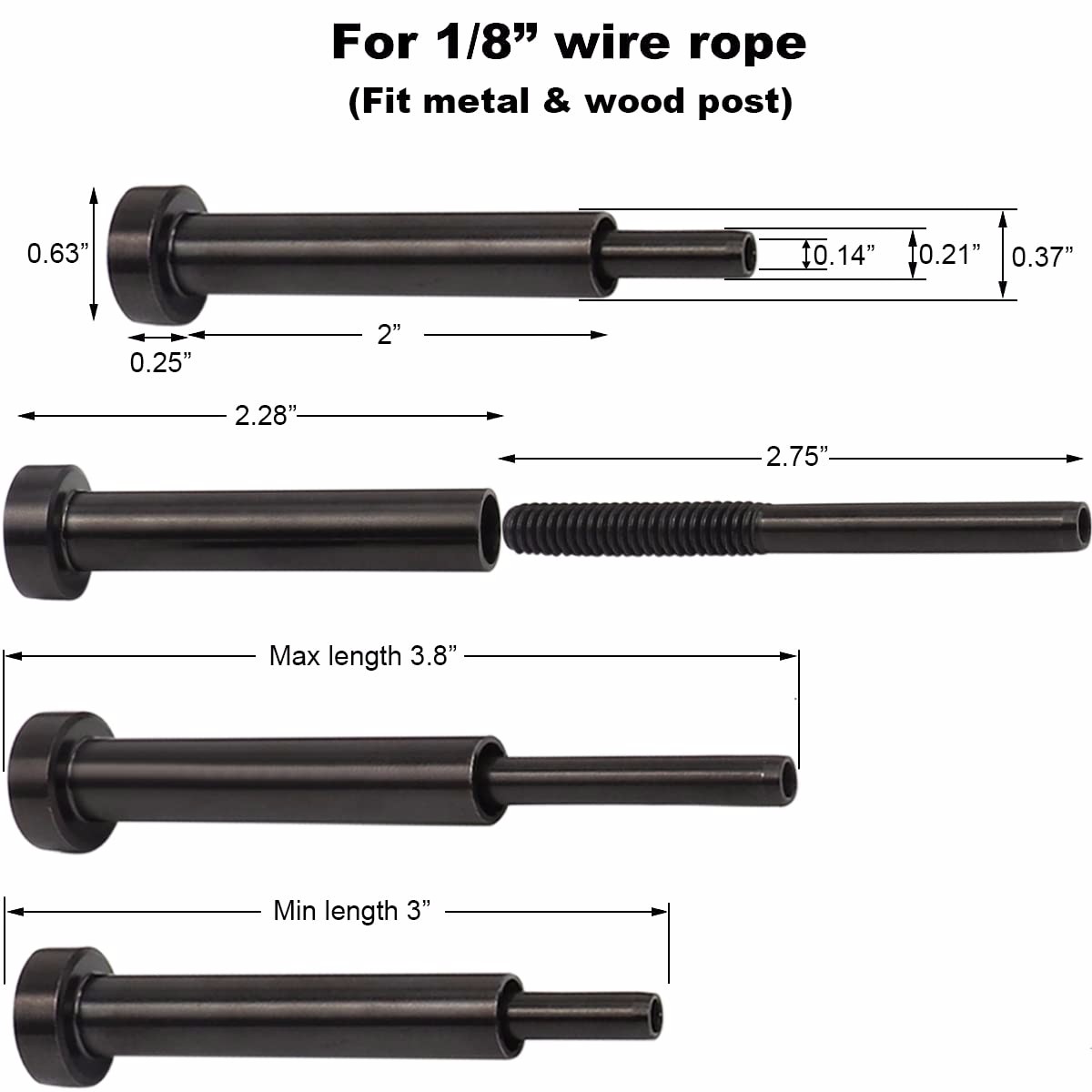 【Dimensions: Fits for 1/8" Stainless Steel Cable】Kits Size - Length of the black Receiver: 2.28", black Threaded stud length: 2.75", black Tensioner Length: 3"(Min)-3.8"(Max).