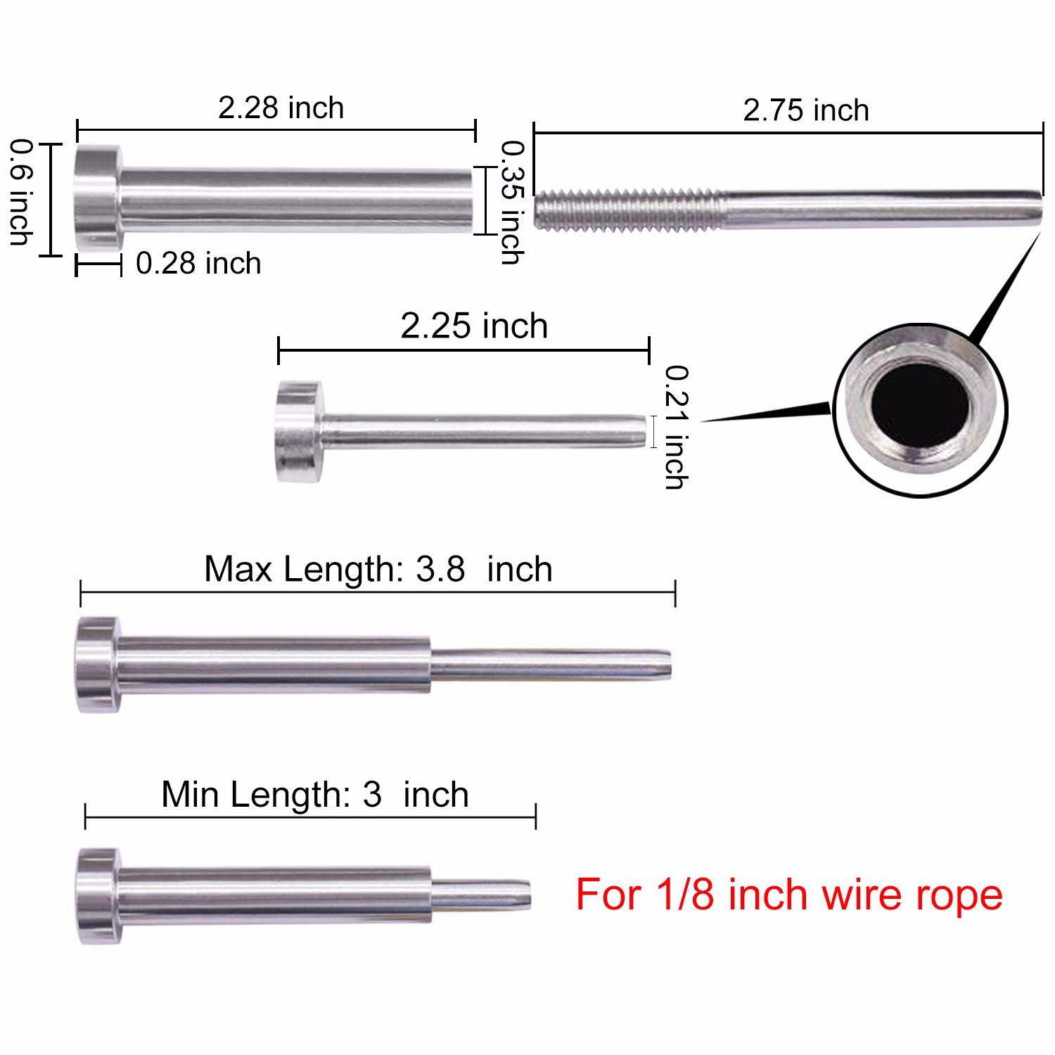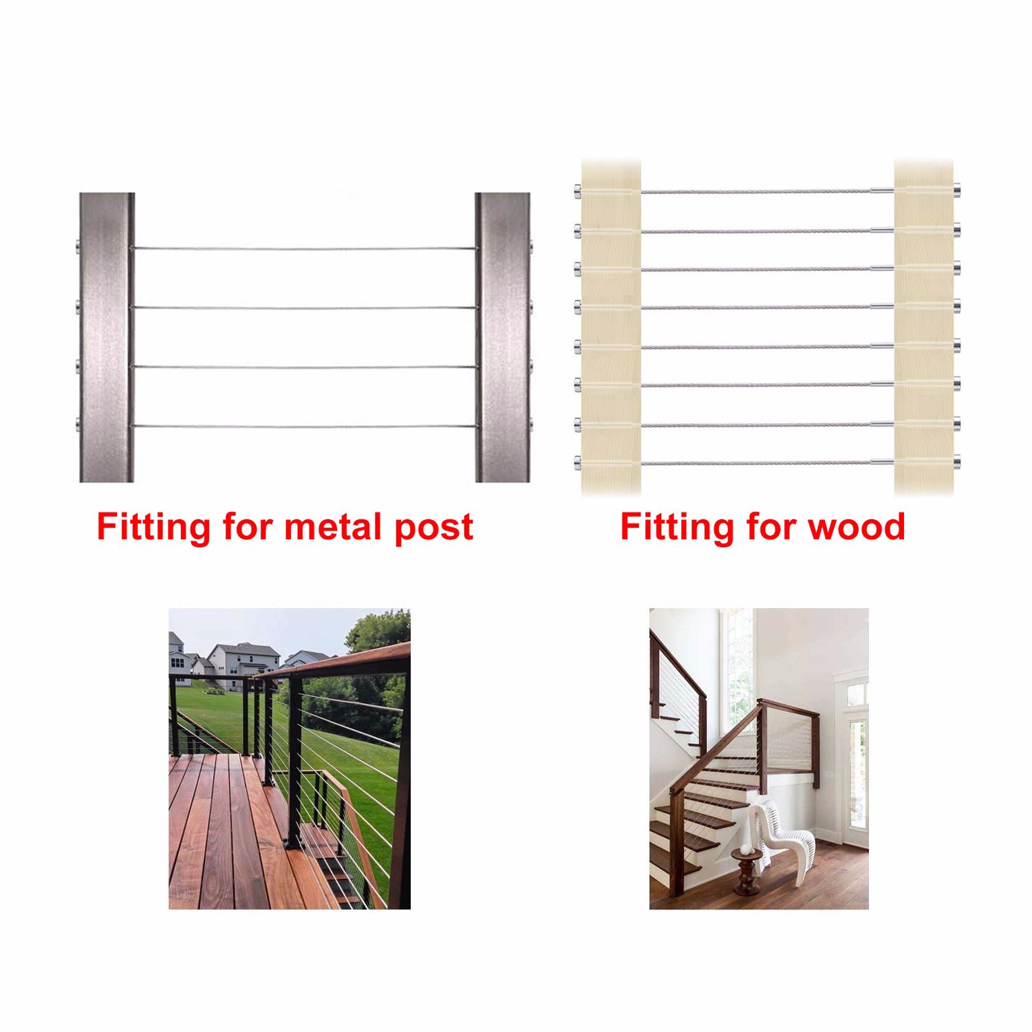 Feature: This cable railing kit provided a invisible and pretty end for a DIY cable railing project, it can be used on all sorts of posts in wood or metal. Fits 1/8" wire rope cable and excellent for both outdoor and indoor applications.