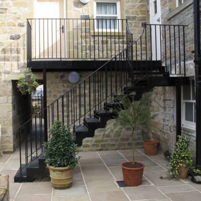 Double Stringer straight iron stairs Information