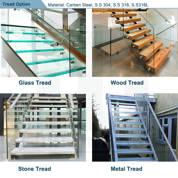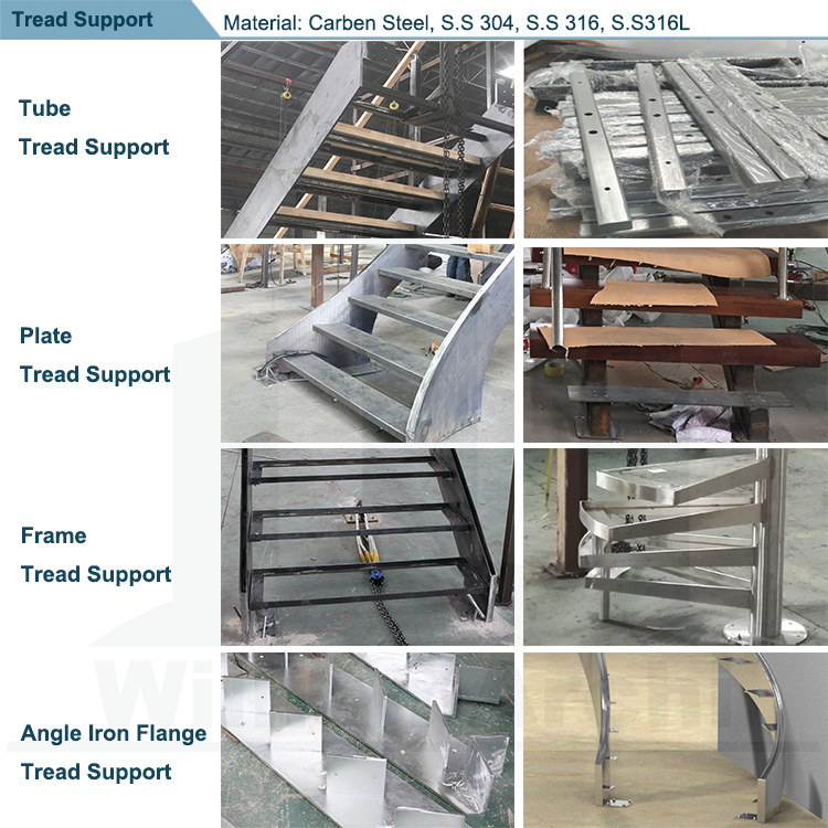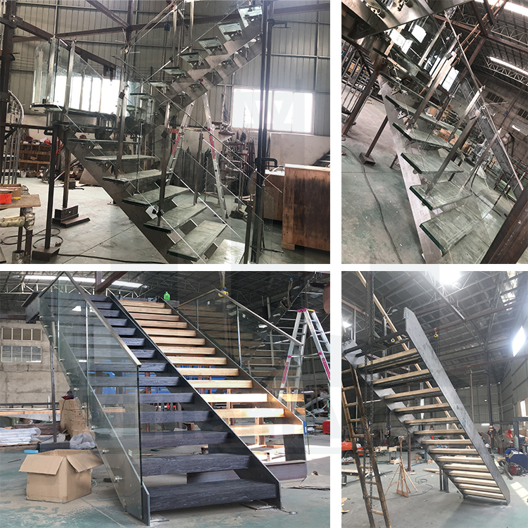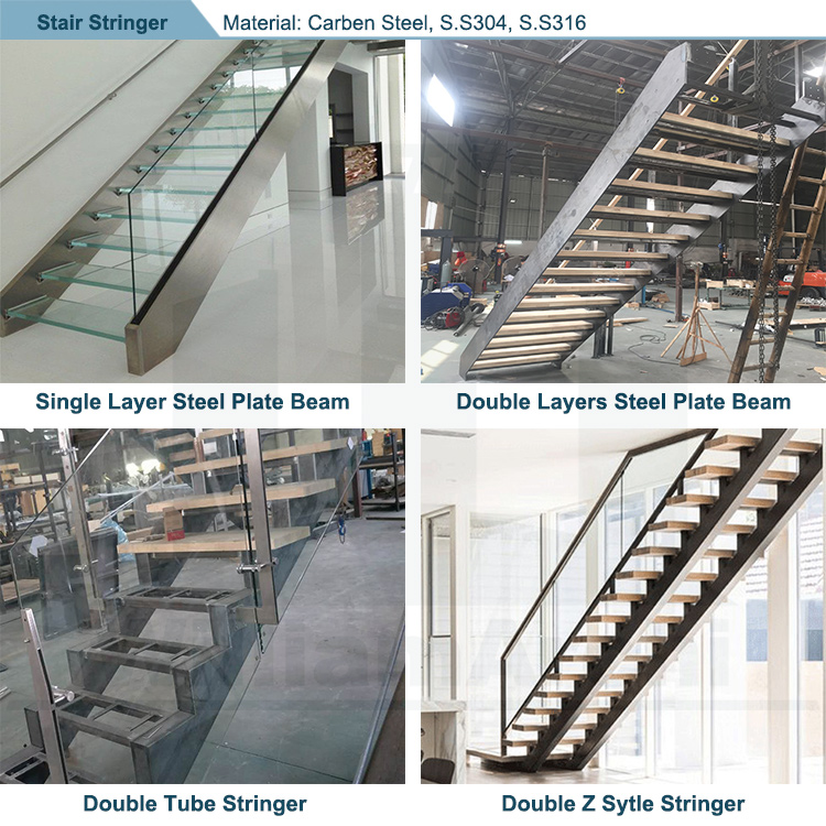 Normally use metal tube, double U keel or double plate beam as stringer. The staircase stringer have two side. Which means a double straight staircase need at least two pcs of beam to make it's stringer system.