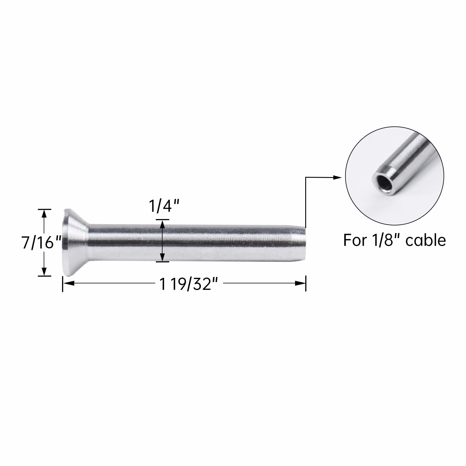 Function- These stemball swage fittings provide a "dead end" for a 1/8" cable railing project, which strongly holds the wire rope in place all the time. Drilling a hole diameter of 1/4" in the post, the only exposed part is a small and shiny head.