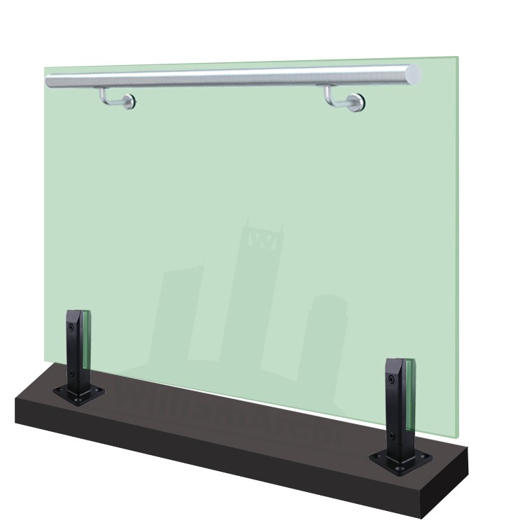 Glass clamp are used between to pieces of glass. This design is to reinforce railing glass panel. Also can make the railing glass alignment.