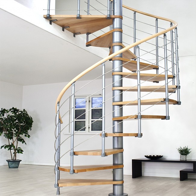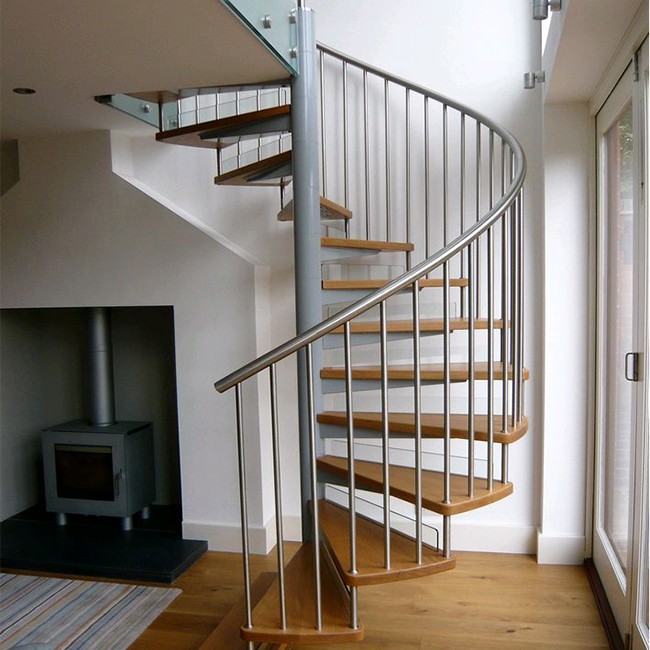 WilliamArchi create an amazing elegant, modern,high quality wooden treads circular staircase.You can customize outdoor helix spiral staircase according to your requirement for your building project with my professional stair manufacturer. Please see details information of option parts of spiral staircase for your reference. This spiral staircase consist with side stainless steel plate stringer and central post.Normally will have metal central post as stringer. Some design will also have a spiral fence or a curved beam at outside to support the staircase.